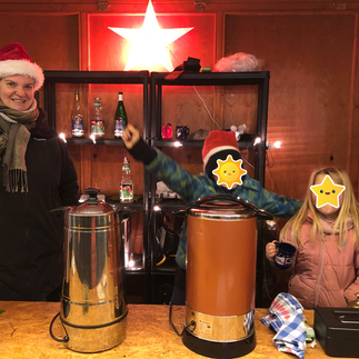 Unsere Aktion umfasste die Versorgung der großen und kleinen Bürgerinnen und Bürger während der Geschäftsöffnungszeiten mit heißem, schmackhaften Glühwein und Apfelpunsch.